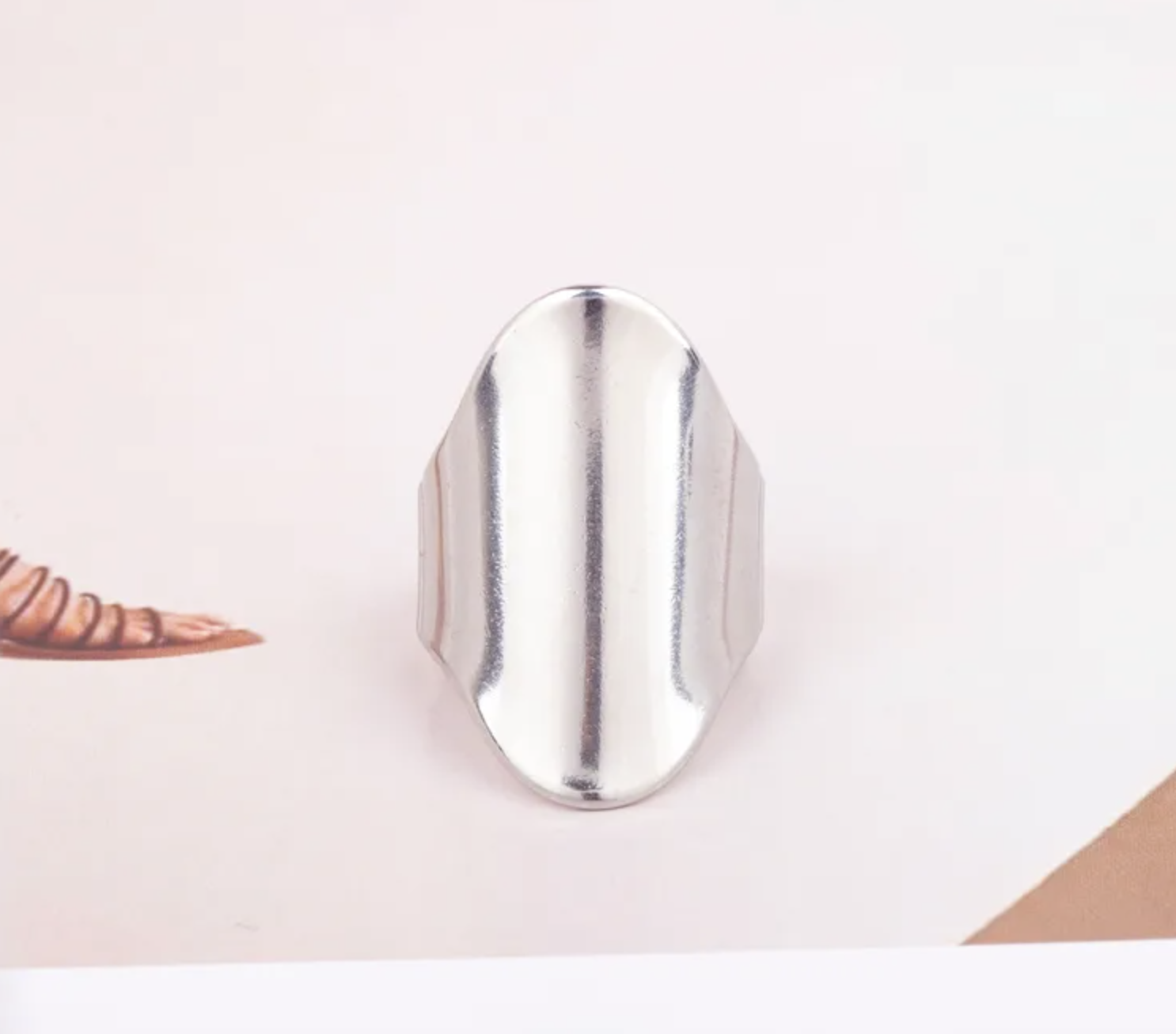 Une bague en acier inoxydable argenté au design large et lisse, parfaite pour un look moderne et épuré.