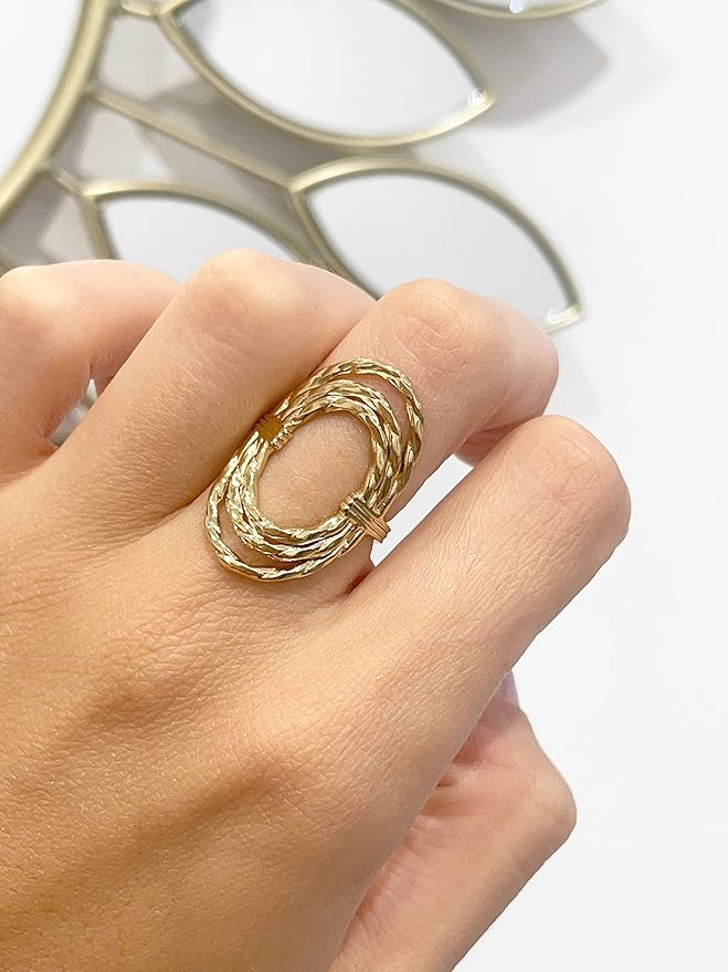 Une bague audacieuse au design ovale tressé, mêlant texture et finesse pour un rendu à la fois moderne et intemporel.